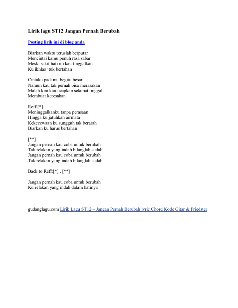 Lirik Lagu St12 Jangan Pernah Berubah Pdf